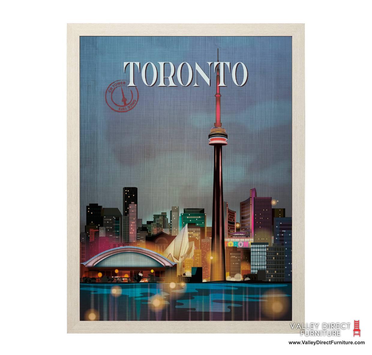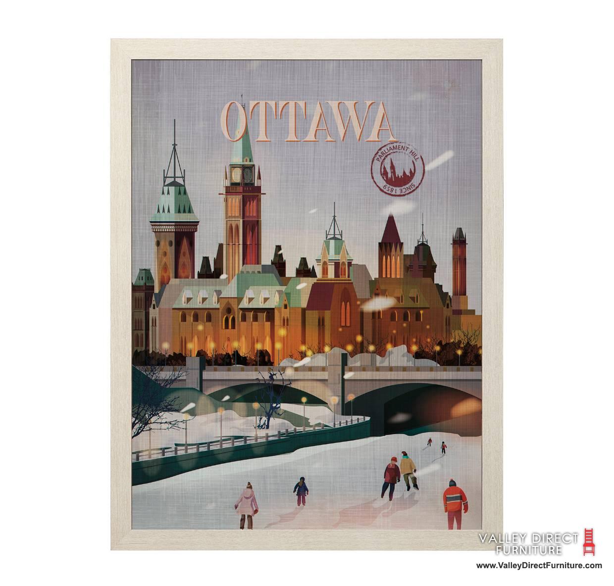 The Go Series Canada - An inspired retro poster that is framed. A collection of Canadian cities depicting iconic architectural landmarks or annual festivals adding to the countries history.