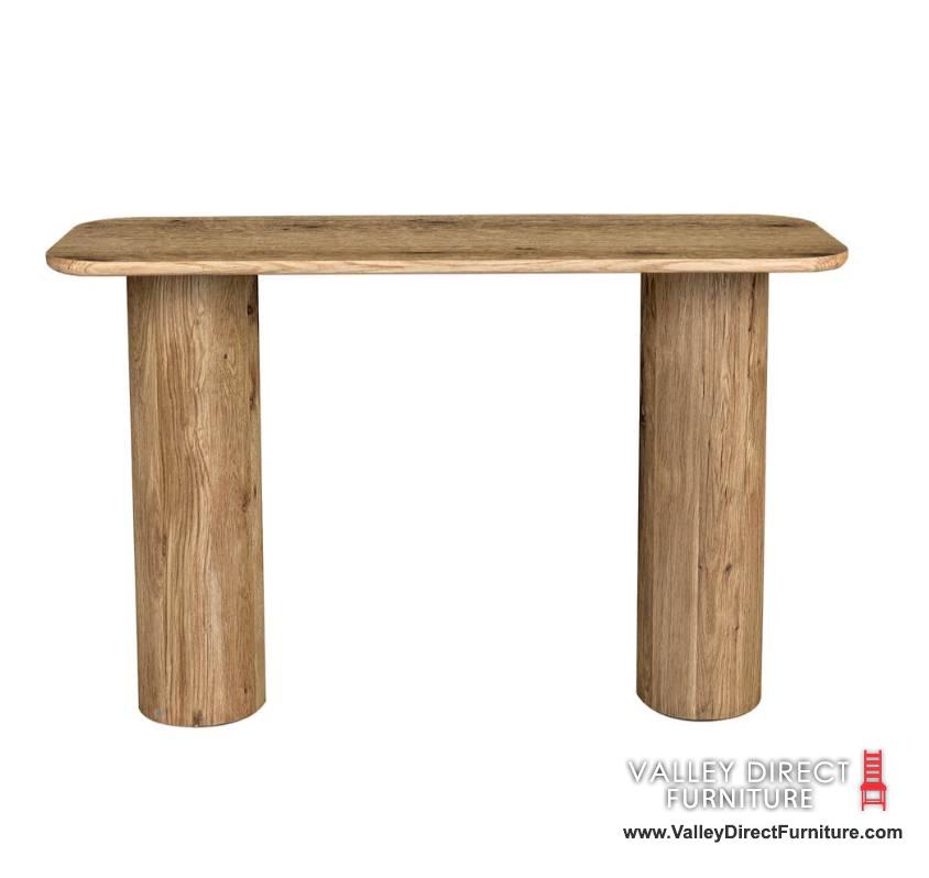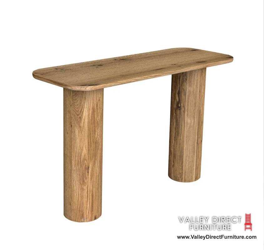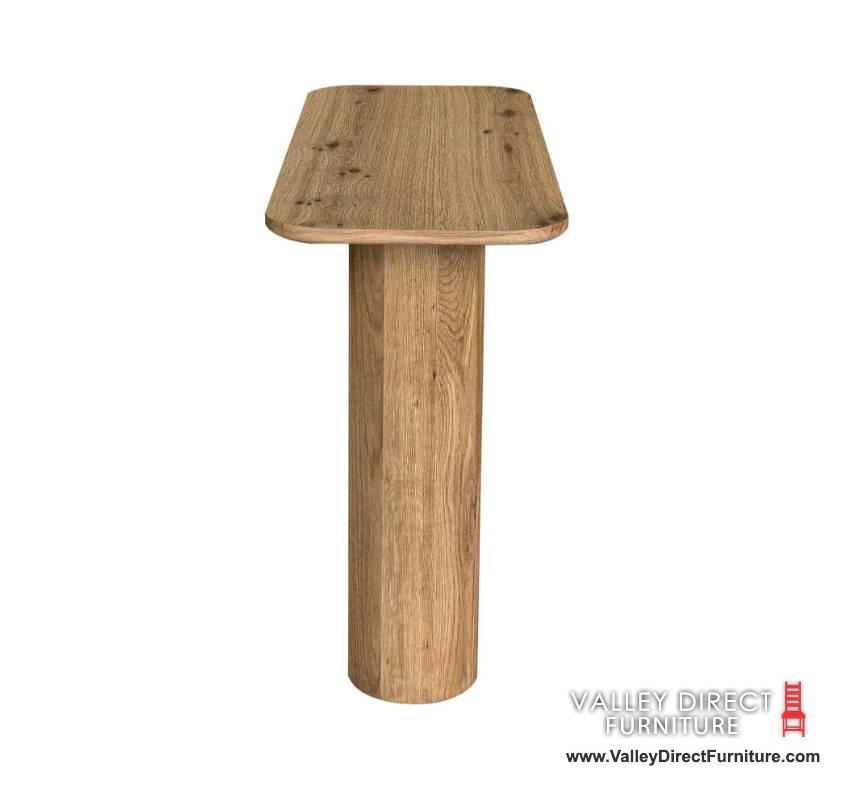 Add practical surface space to your living room, entryway, or hallway with this console table in Brown. Built from durable oak for lasting use, it features a compact footprint that fits neatly behind sofas or along walls. The softly rounded profile and edges lend a warm, approachable look. Its versatile design makes it an easy addition to both modern and classic interiors.