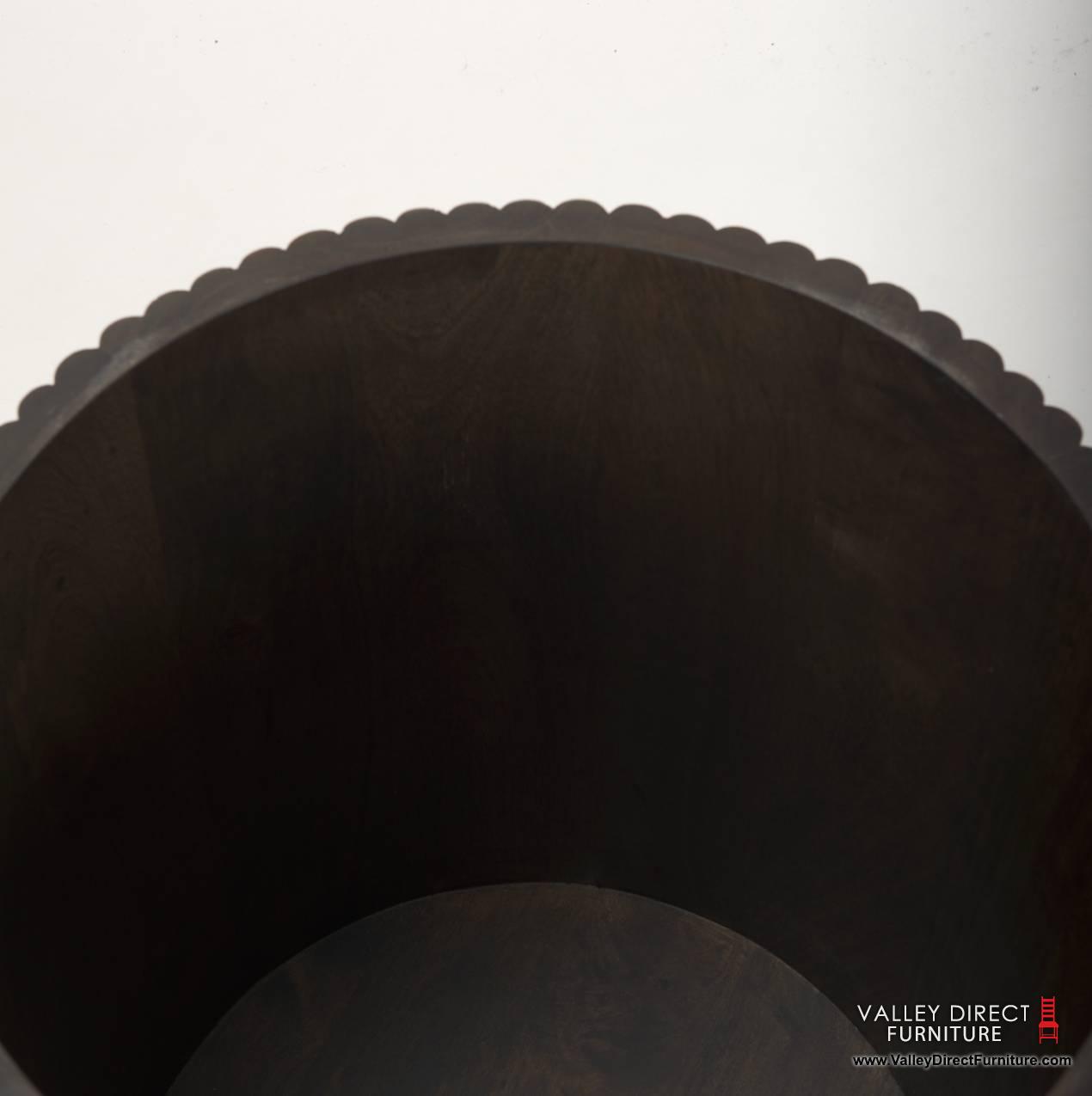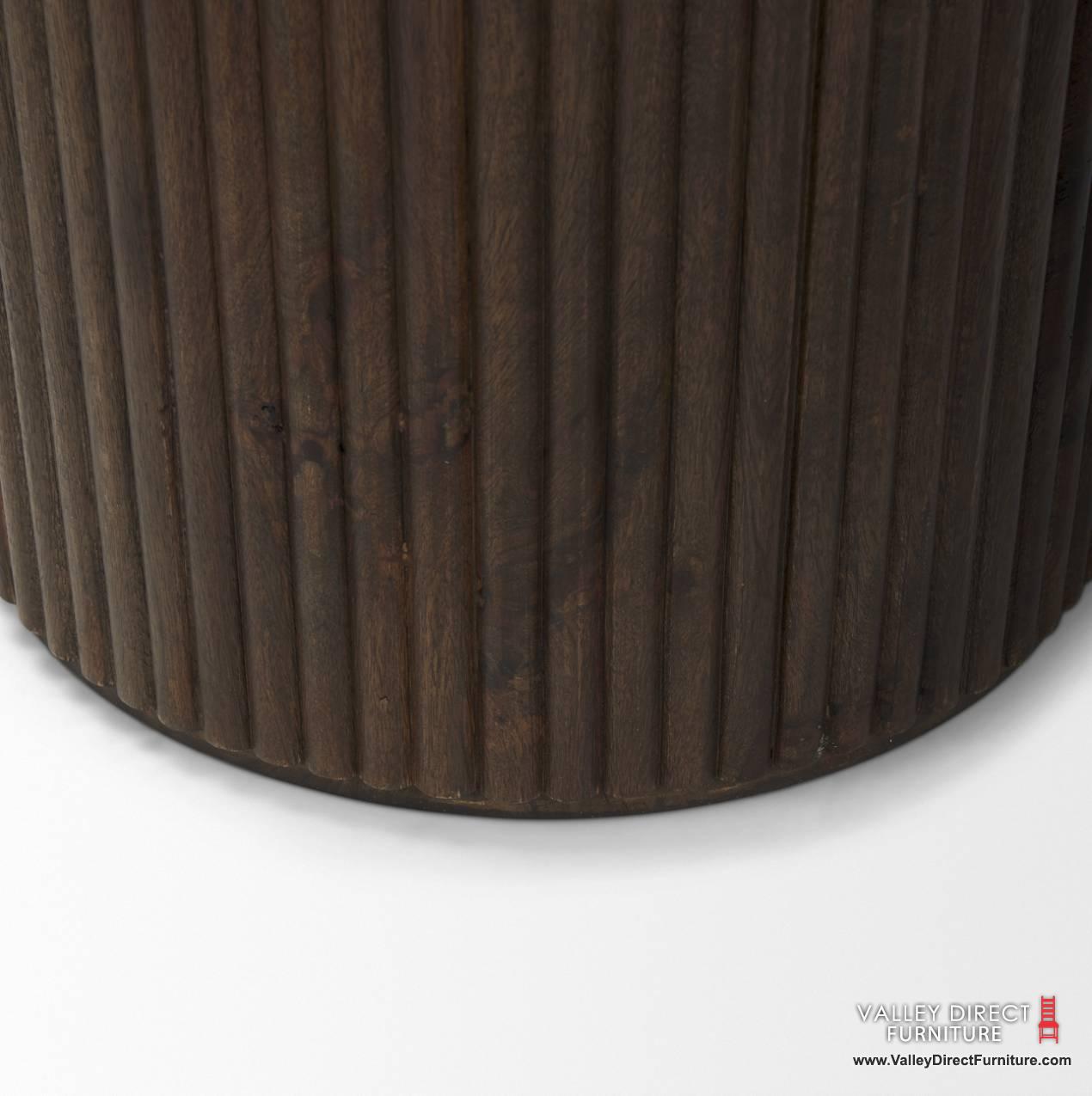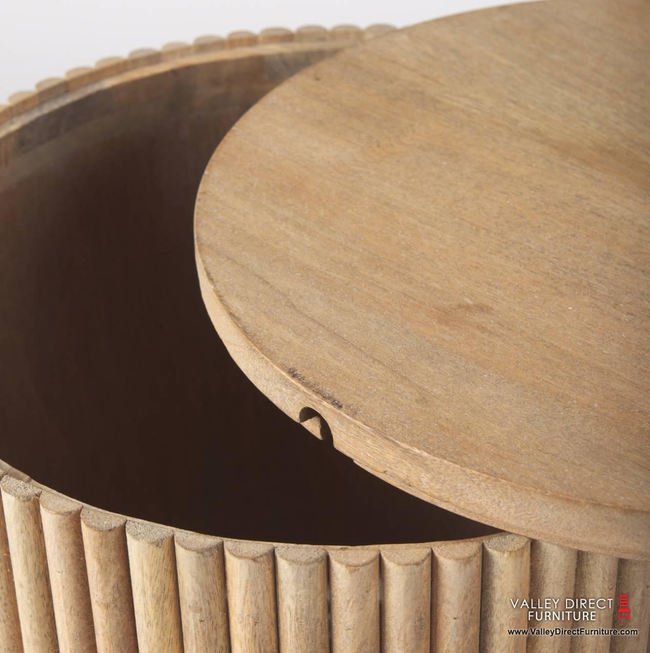 The decadent, dark brown or light brown Terra Side Table is a beautiful statement piece to include in the home or office space. Bold, contemporary, and trendy this eye-catching piece has been fashioned from solid mango wood, whose beautiful grain can be seen on the round top and amidst the fluted round base. Not only is this side table stunning, but it also opens from the top to provide storage! This quality table pairs perfectly with the Terra Coffee Table, Dining Table, and Sideboard.
