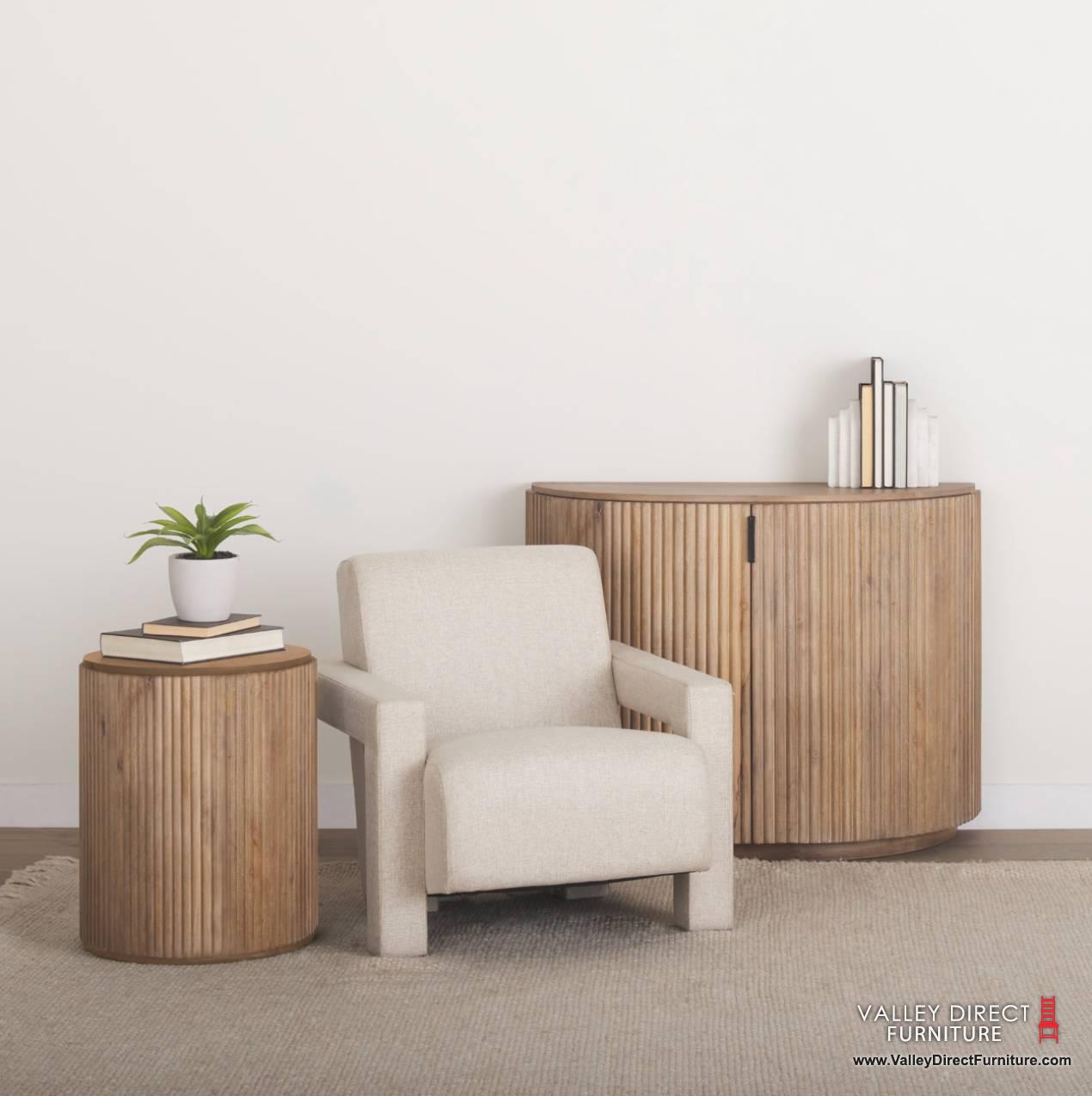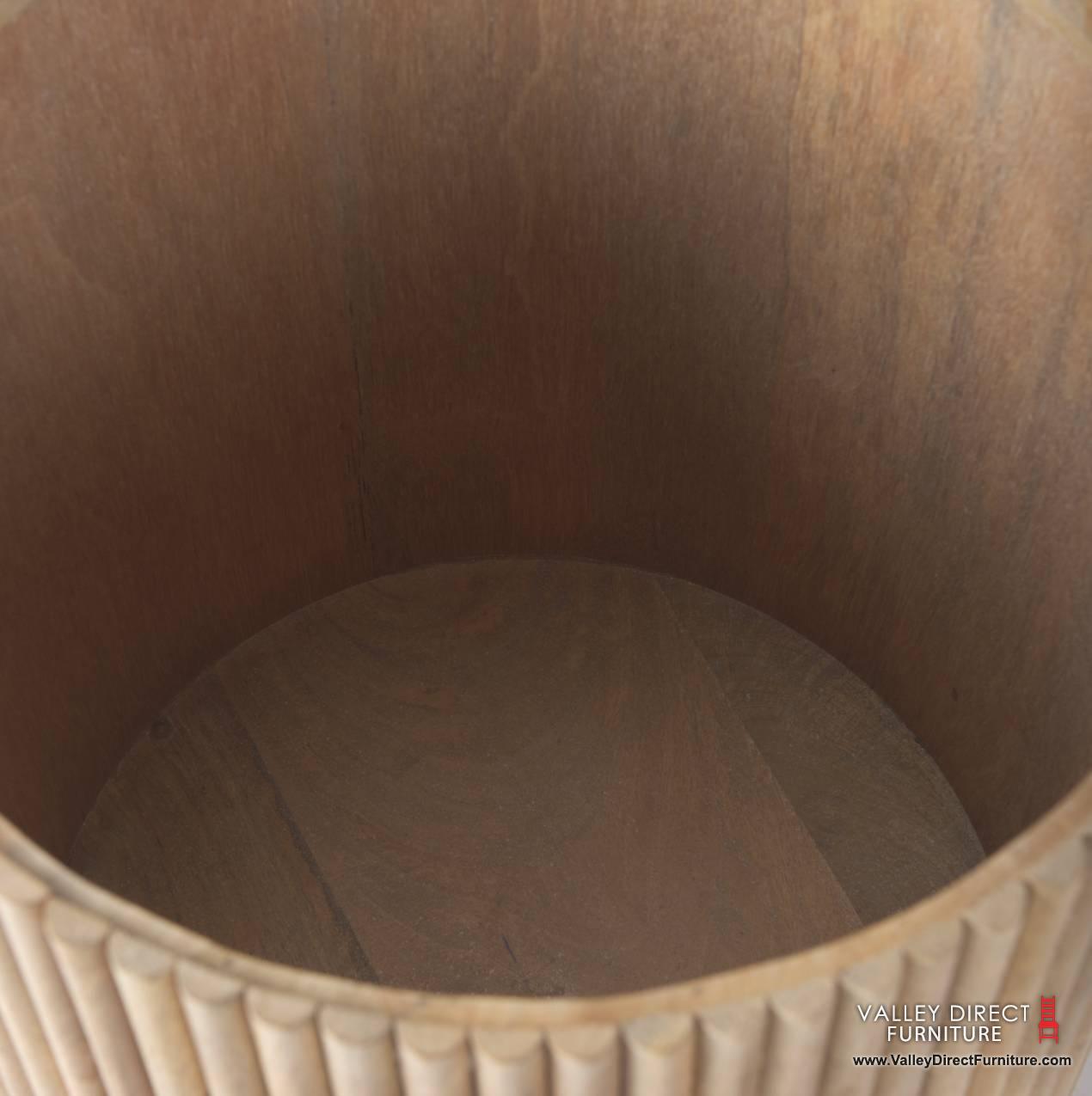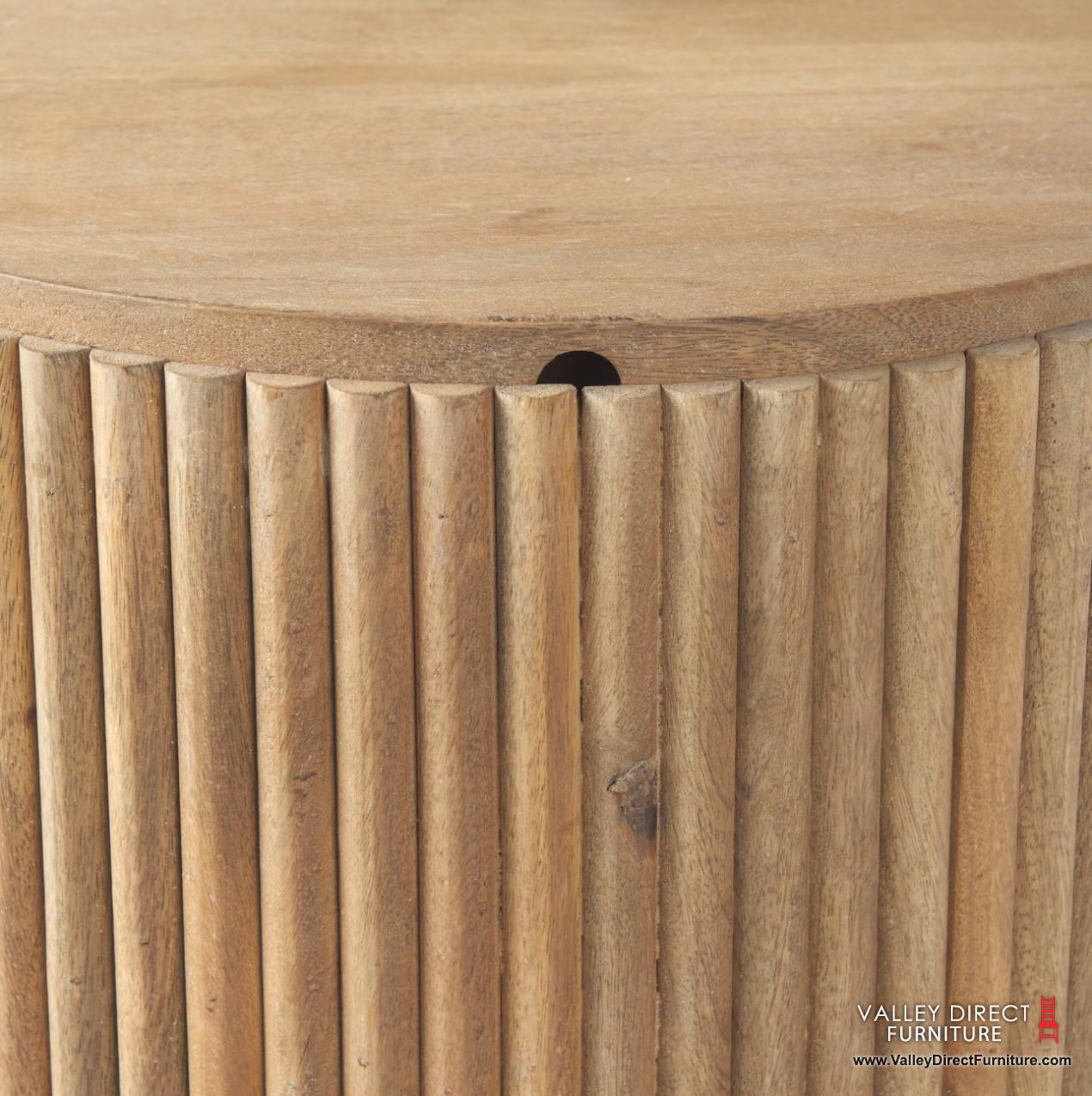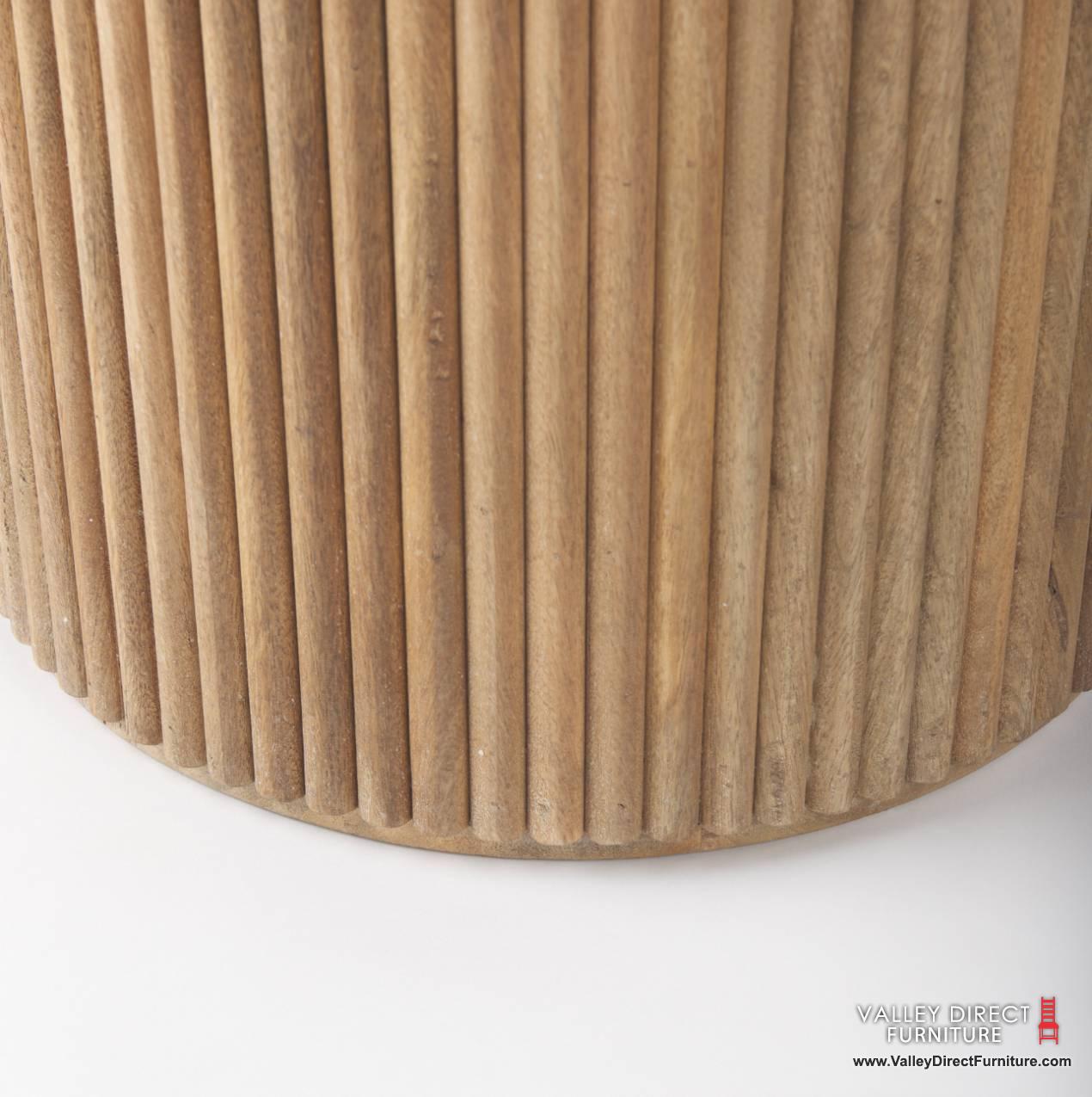 The decadent, dark brown or light brown Terra Side Table is a beautiful statement piece to include in the home or office space. Bold, contemporary, and trendy this eye-catching piece has been fashioned from solid mango wood, whose beautiful grain can be seen on the round top and amidst the fluted round base. Not only is this side table stunning, but it also opens from the top to provide storage! This quality table pairs perfectly with the Terra Coffee Table, Dining Table, and Sideboard.