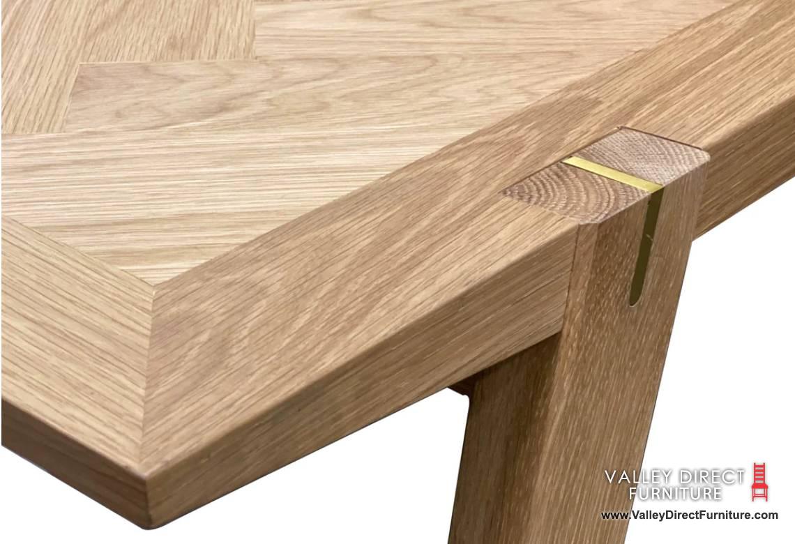 Other Details | Top: Solid Rubber edge with Oak Veneer Frame/Legs: Solid Oak (brass Inlay) |