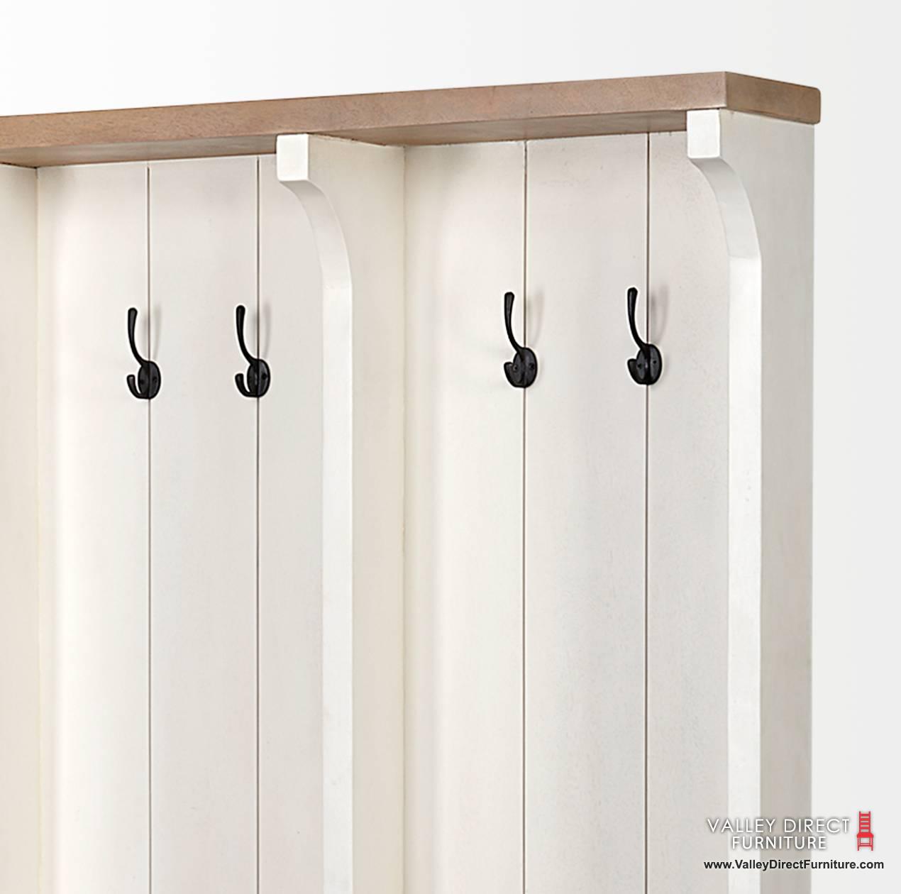 Featuring compartments for coats in addition to pull-out cubbies, the Fairview IV hall tree offers ample storage space for a wide variety of items ranging from coats, hats and shoes.